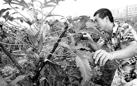 9月2日,笔者看到台州市黄岩区宁溪镇桥亭居一居民把自己种的黄秋葵果实当作礼物送给朋友品尝。黄秋葵原产于非洲,现我国许多城市周边也有少量种植。据了解,它不但营养价值高,且有多种药用价值,在日、韩被称为“绿色人参”;美国则称它为“植物伟哥”。近年来宁溪有人从外地打工带来种子试种成功,圆果种和棱角种均有,当地群众纷纷通过各种渠道迅速发展,但市场上目前还不多见。
